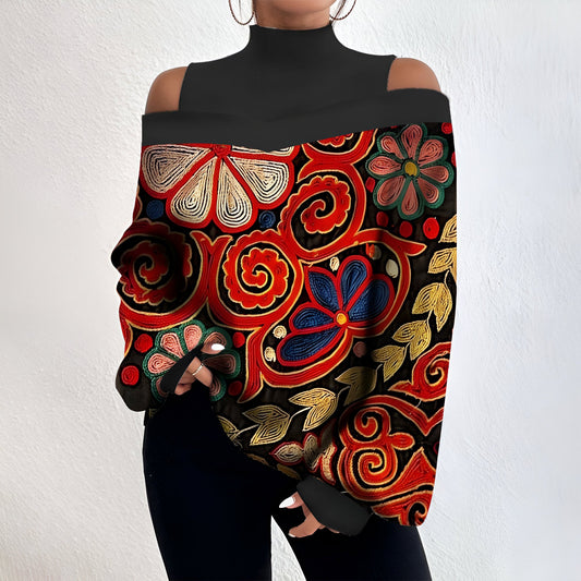 Chique trui met verlaagde schouder, lantaarnmouwen en col