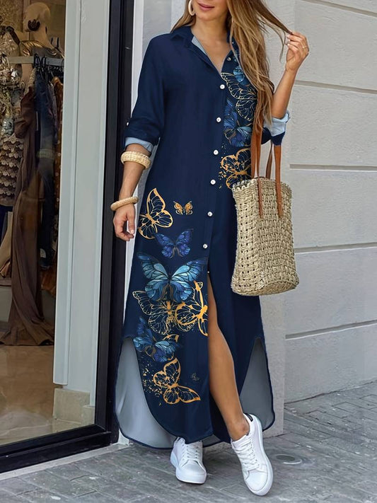 AanbiedingEmma – maxi overhemdjurk met vlinderprint