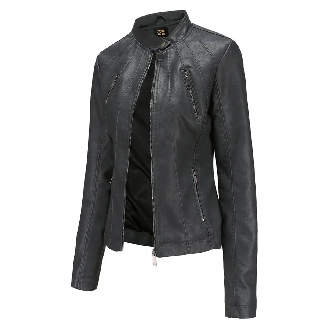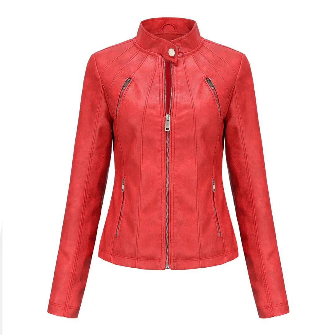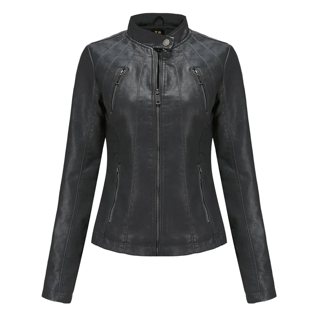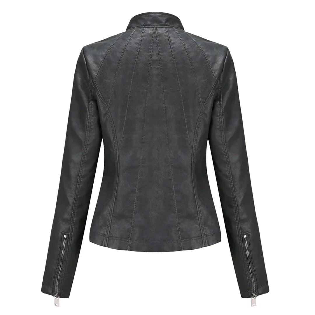 Adelija – Een stijlvolle leren jas die overtuigt door zijn moderne design en hoogwaardige afwerking. Perfect om een vleugje elegantie en coolheid toe te voegen aan elke outfit.