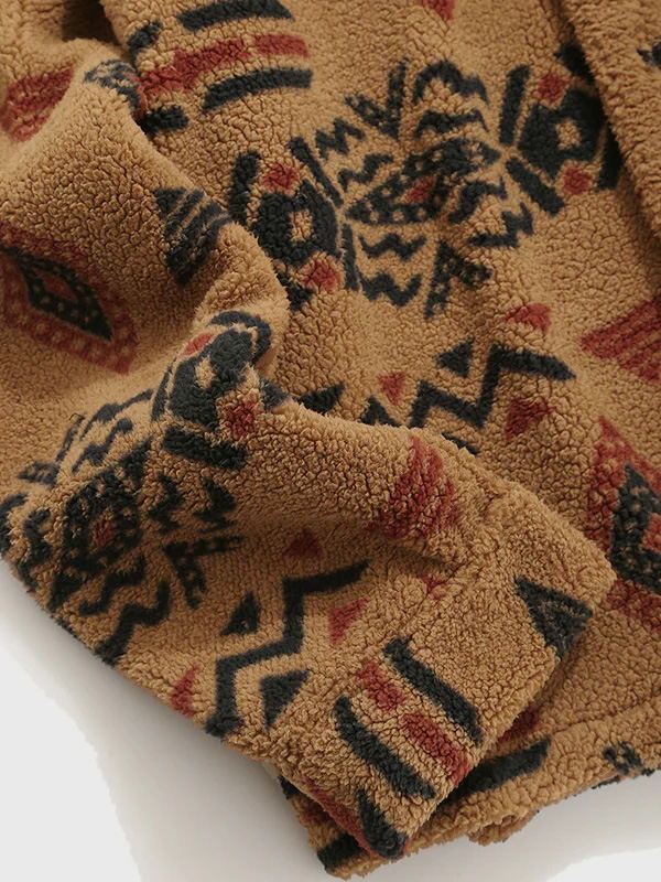 De Alec is een retro fleece jack met revers in een etnische stijl. Het biedt warmte, comfort en een uniek design, perfect voor een stijlvolle en casual look.