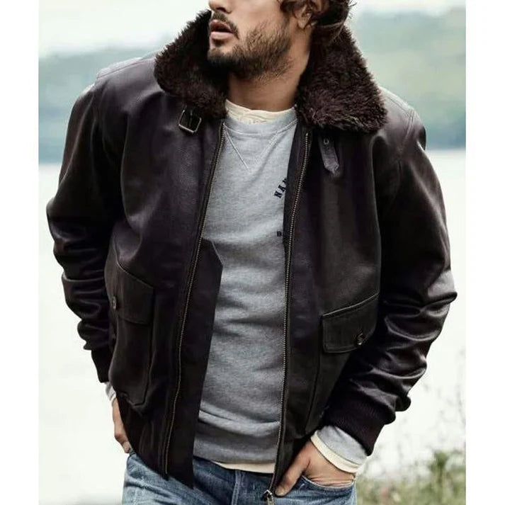 De Alf vintage leren jas straalt klassieke elegantie uit met zijn authentieke uitstraling en tijdloze design. De bontkraag zorgt voor extra warmte en comfort, terwijl de ritssluiting een praktische en stijlvolle afwerking biedt. Perfect voor een stoere, maar verfijnde look.