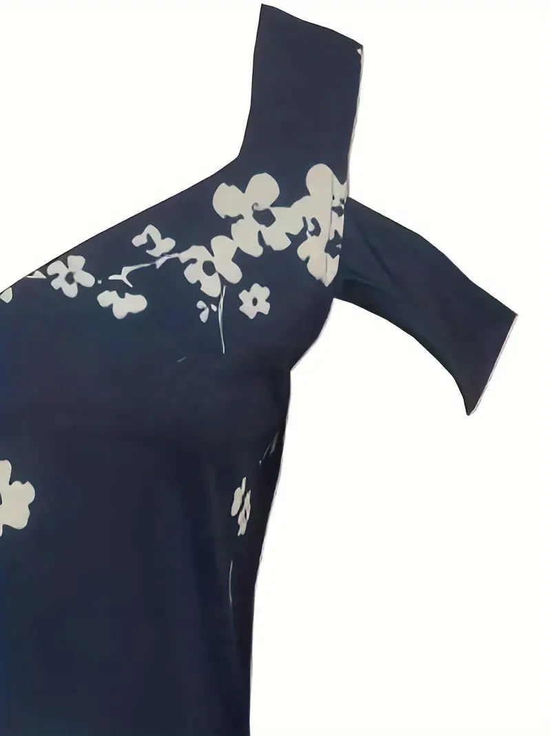 Amelia - jurk met V-hals en korte mouwen met bloemenprint
