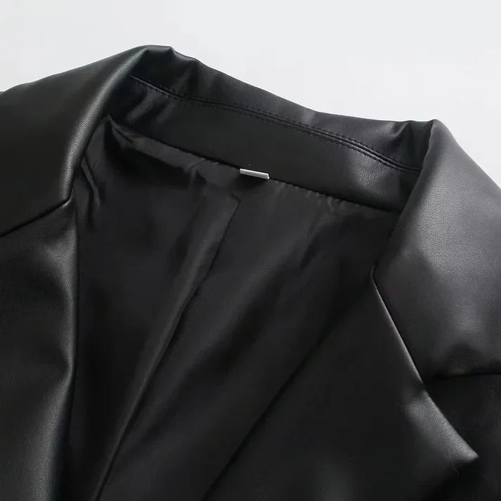 Anna - Losjes vallend PU-leren jack voor dames: Trendy en veelzijdig, perfect voor een moderne, casual look.