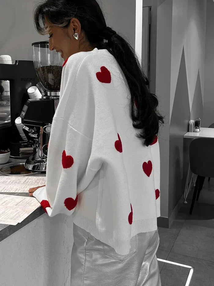 Anna | Hartgebreide trui die charme en gezelligheid combineert. Het speelse design en de zachte stof maken het een favoriet kledingstuk voor ontspannen dagen.
