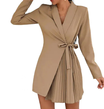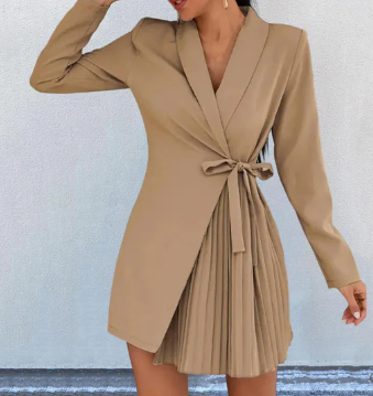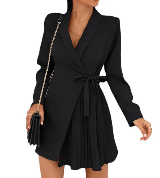 De Aurora, effen blazerjurk met V-hals en revers is een elegante keuze voor elke gelegenheid. Deze jurk combineert een klassiek design met moderne elementen en heeft een flatterende pasvorm. De diepe V-hals en revers geven de jurk een verfijnde touch, terwijl het effen design tijdloze elegantie uitstraalt. Perfect voor formele gelegenheden en stijlvolle optredens.