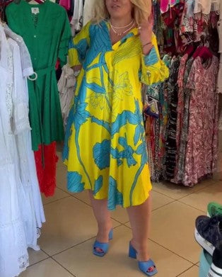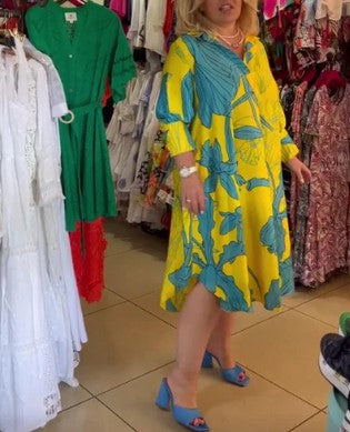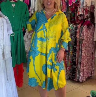 "Ava de felgele korte jurk is een eyecatcher voor zonnige dagen. Met zijn vrolijke kleur en korte lengte straalt hij jeugdige frisheid uit. Perfect voor de zomer, deze jurk biedt zowel stijl als comfort voor alle gelegenheden, van casual uitjes tot zomers partijen."