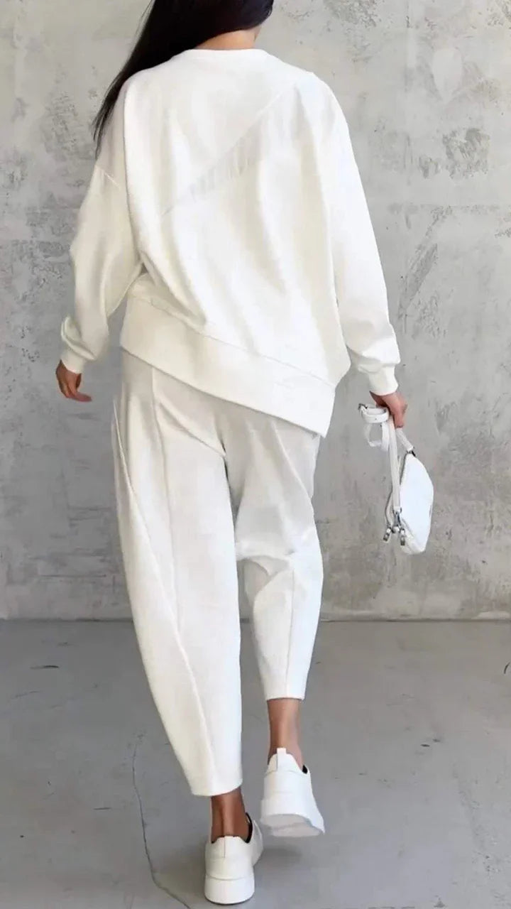 Babs | Tweedelige set met ronde hals en lange mouwen: Stijlvolle en comfortabele set bestaande uit een top met ronde hals en lange mouwen. Ideaal voor een casual maar modieuze look, perfect voor dagelijks gebruik.