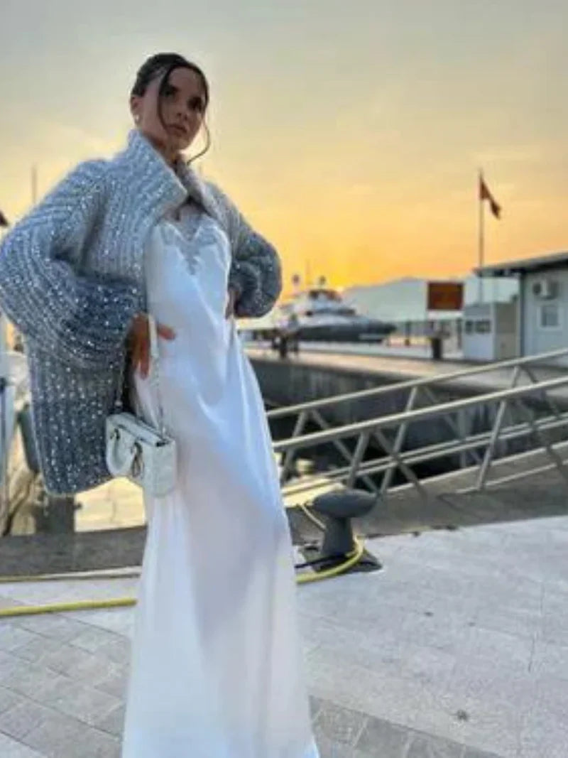 Cassidy | Glittery Zijden Vest: Dit elegante zijden vest voegt een vleugje glamour toe aan elke outfit. Met een subtiel glittereffect en zacht comfort is het perfect voor speciale gelegenheden of stijlvolle alledaagse looks.