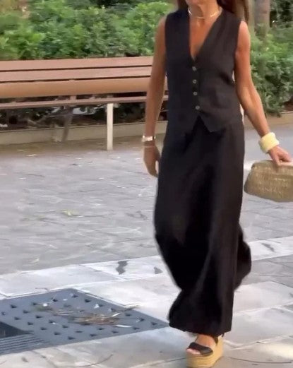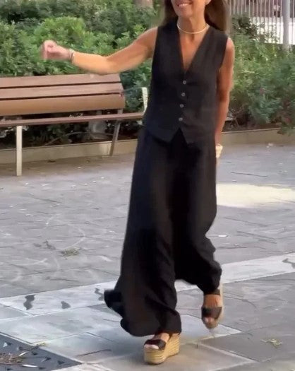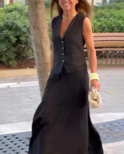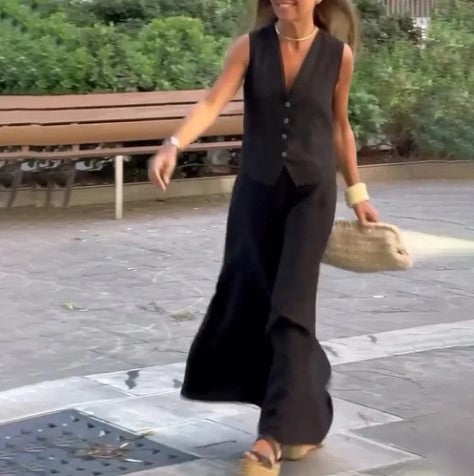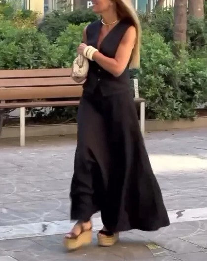"Chloe Black Vintage Two-Piece Suit: Een stijlvol tweedelig pak in zwart met vintage charme dat tijdloze elegantie en retro flair combineert. Perfect voor speciale gelegenheden en een klassieke uitstraling."