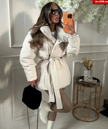 Luxe Wikkelpuffer voor Dames met Tailleband en Riem: Deze elegante pufferjas biedt een verfijnde uitstraling met een comfortabele wikkelsnit en een stijlvolle tailleband met riem. Perfect voor een warm en flatterend silhouet in de winter.