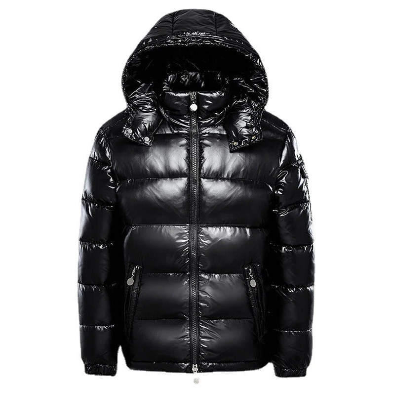 Glanzend zwart donsjack met een stijlvolle uitstraling. Het lichte en warmhoudende ontwerp is ideaal voor koude dagen en biedt een modieuze look.