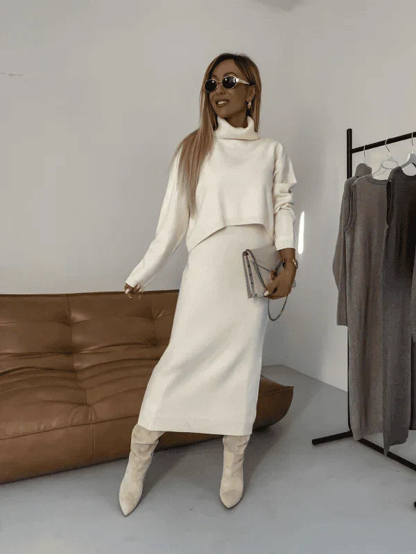 Elegant Harmony, set bestaande uit een midi-jurk met col, ideaal voor een stijlvolle en comfortabele look.