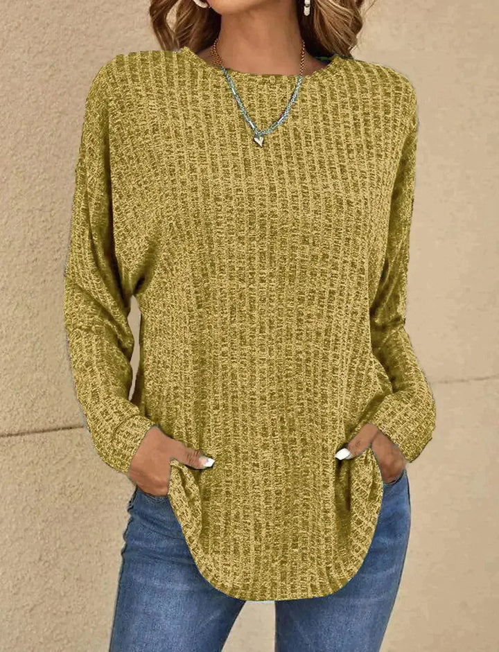 Elegante gemêleerde trui – met wijde ronde hals en lange mouwen
