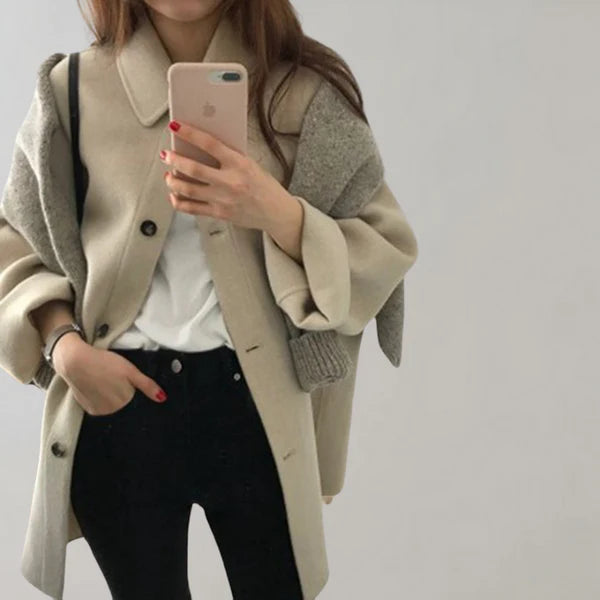 Deze elegante jas voor dames combineert stijl en comfort, ideaal voor verschillende gelegenheden. Met zijn verfijnde snit en hoogwaardige materialen biedt de jas een tijdloze uitstraling en een perfecte aanvulling op elke garderobe.