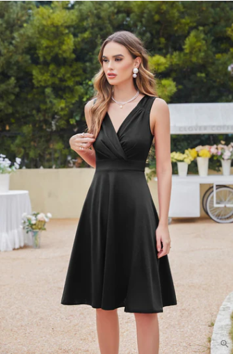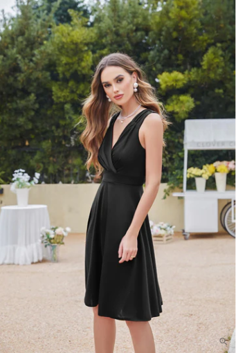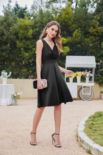 Ella - mouwloze cocktailjurk met v-hals en uitlopende buste