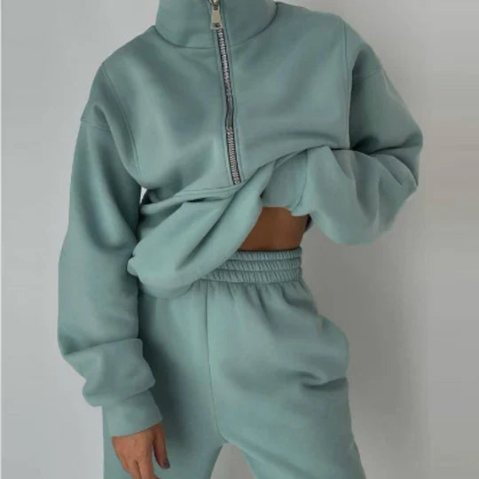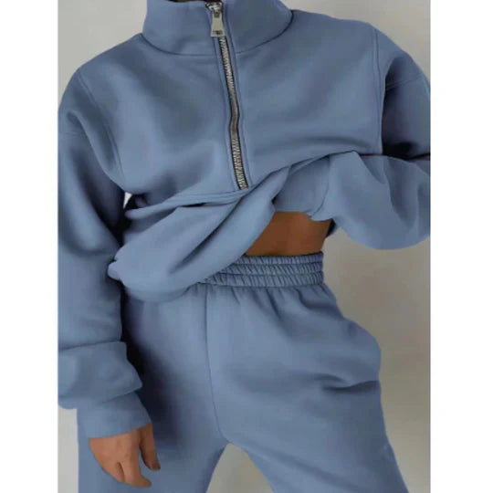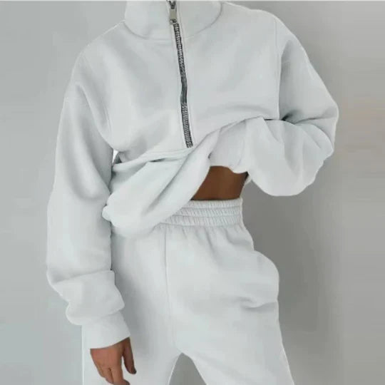 Het Elsiem damestrainingspak biedt ultiem comfort en functionaliteit. Gemaakt van zacht, ademend materiaal, ideaal voor sportieve activiteiten of ontspannende dagen thuis. Met een praktische ritssluiting en een comfortabele snit zorgt het pak voor maximale bewegingsvrijheid. Het eenvoudige, moderne ontwerp maakt hem veelzijdig - perfect voor actieve vrouwen die waarde hechten aan stijl en comfort.