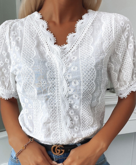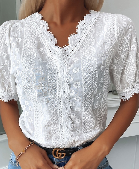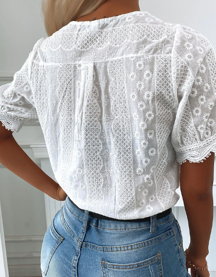 Emily – casual kanten overhemd met korte mouwen voor dagelijks gebruik