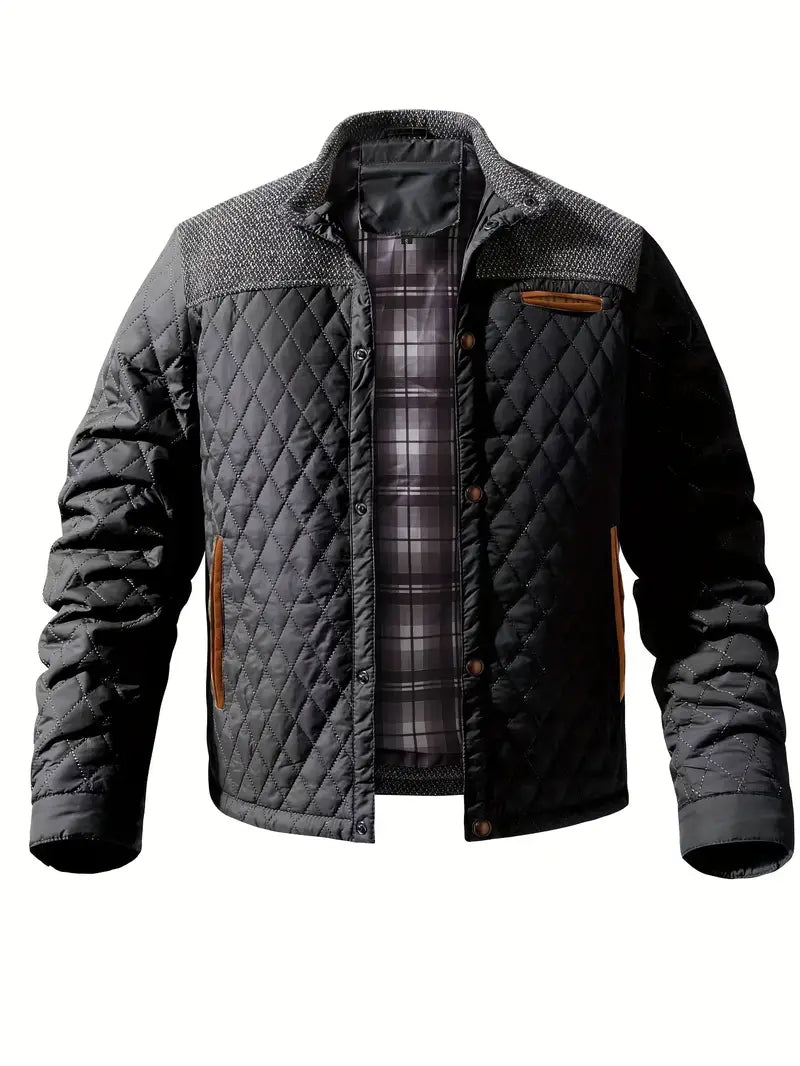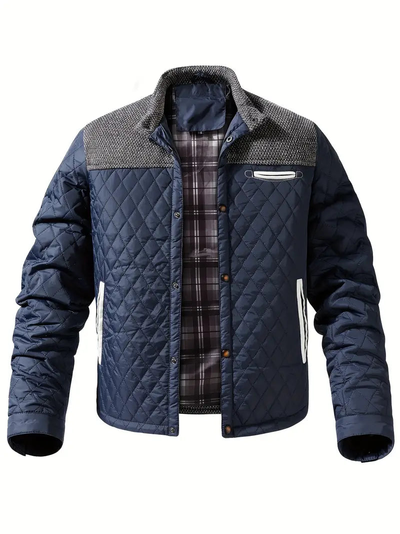 Een verwarmende herenjas met een gewatteerd ontwerp, hoge kraag en praktische zakken. Perfect voor koude dagen en een stijlvolle look.