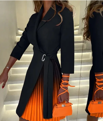 De Grace Patchwork Goudvis Print Blazerjurk is een opvallend en uniek kledingstuk. Met zijn artistieke goudvissenprint en elegante blazerontwerp zal deze jurk ieders aandacht trekken. De Grace-jurk is perfect voor speciale gelegenheden en combineert creatieve charme met stijlvolle elegantie.