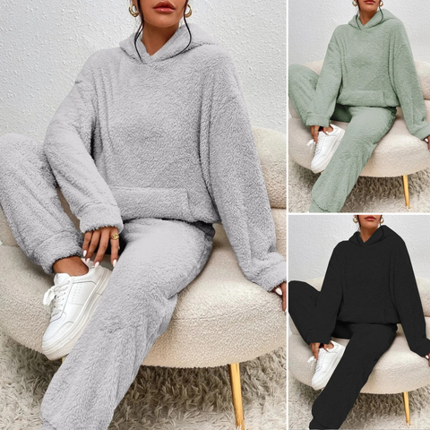 Grace is een teddyset met capuchon die warmte en comfort combineert. De zachte stof voelt heerlijk aan op de huid, terwijl de casual pasvorm zorgt voor een ontspannen look. De capuchon biedt extra bescherming tegen de kou, terwijl de bijpassende broek de set compleet maakt. Perfect voor thuis of onderweg op koude dagen.