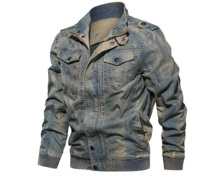 "Hendrick – heren-spijkerjack met opstaande kraag, combineert tijdloze stijl met robuust vakmanschap. Perfect voor een casual, moderne look."