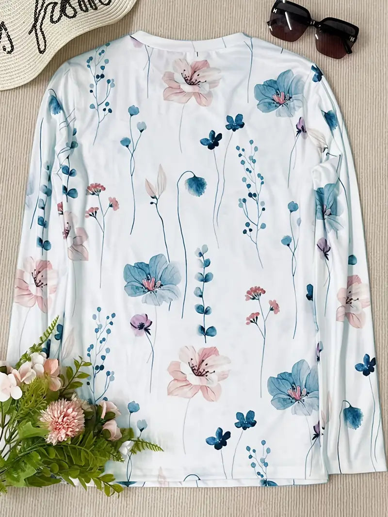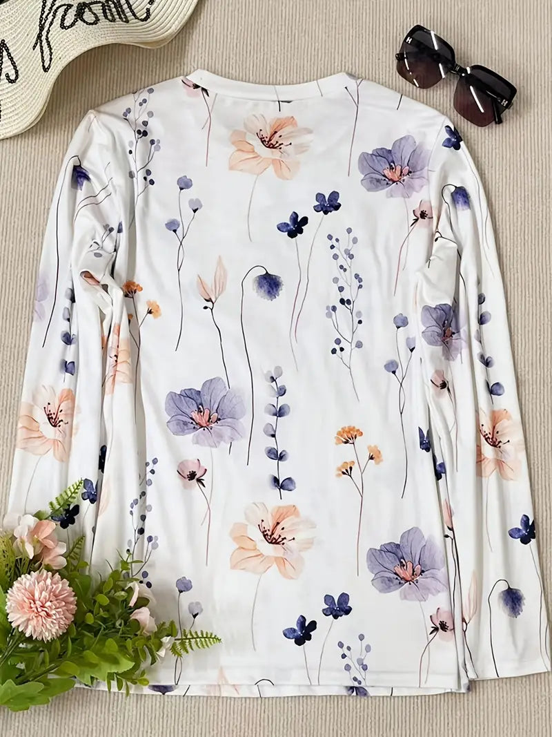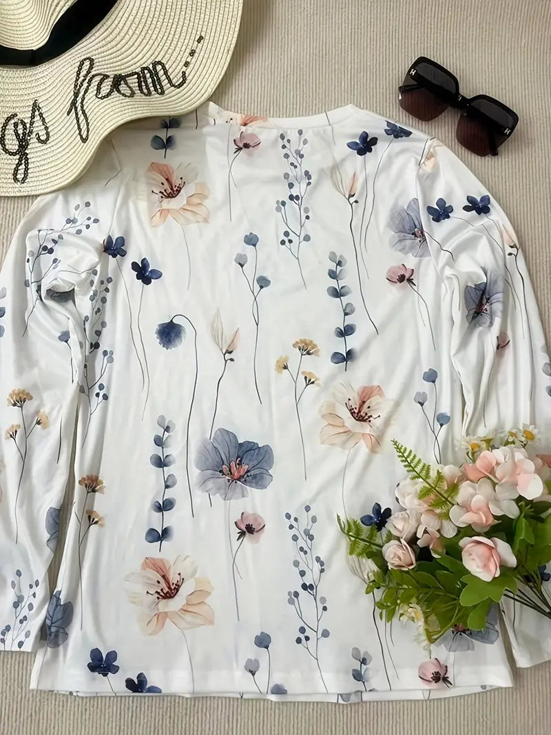 “Het Hester T-shirt met lange mouwen heeft een prachtige bloemenprint en combineert casual comfort met vrouwelijke charme. Dit veelzijdige kledingstuk is perfect voor dagelijks gebruik en voegt een vleugje stijl toe aan elke outfit. Of je nu boodschappen doet of vrienden ontmoet voor de lunch, met het overhemd van Hester zie je er moeiteloos chic en trendy uit met een vleugje bloemige flair.