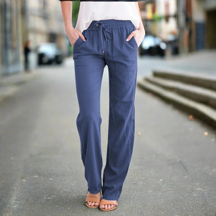 "Jette, Zachte Broek voor Dames: Een comfortabele en stijlvolle broek die zachtheid en moderne elegantie biedt. Perfect voor dagelijkse draagcomfort en casual chic."
