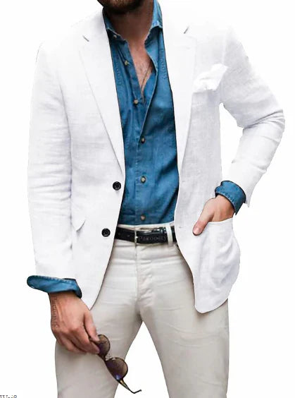 Jon - linnen herenblazer strandbruiloft casual getailleerde pasvorm effen kleur enkele rij knopen met twee knopen