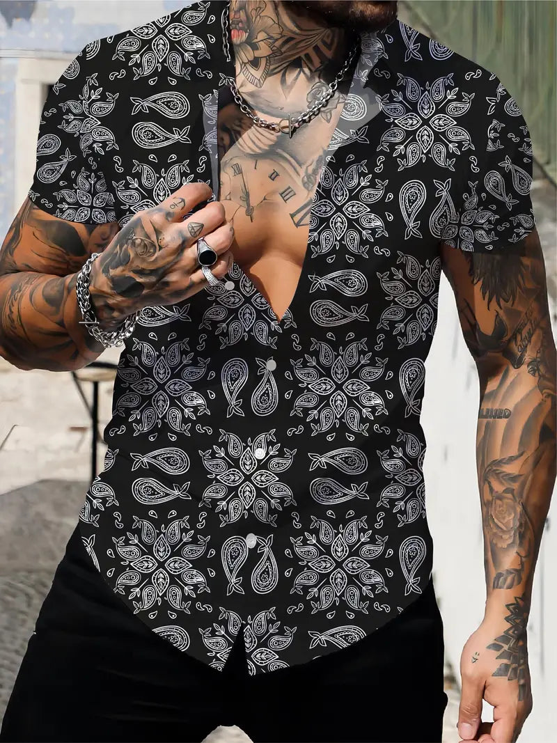 Joshua presenteert een casual T-shirt in Hawaiiaanse stijl voor heren - een relaxed en stijlvol kledingstuk dat de warme sfeer van de tropen in je dagelijkse leven brengt. Dit T-shirt heeft een levendig ontwerp geïnspireerd op de exotische kleuren en patronen van de Hawaiiaanse eilanden.