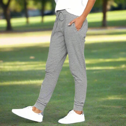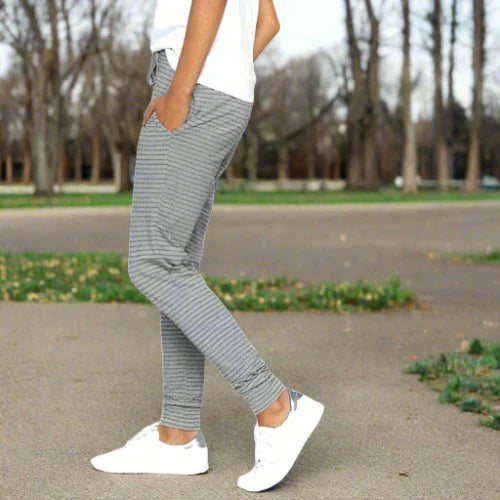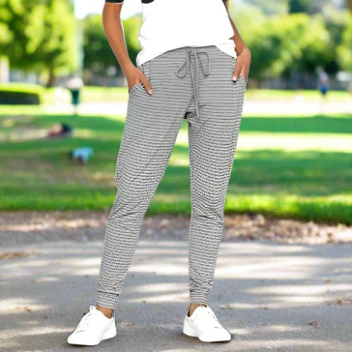 Julia is een modieuze gestreepte katoenen broek die stijlvol comfort biedt. Perfect voor casual outfits, het combineert een modern design met een comfortabele pasvorm.