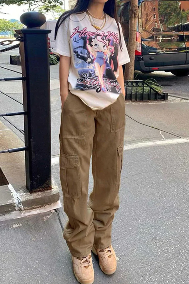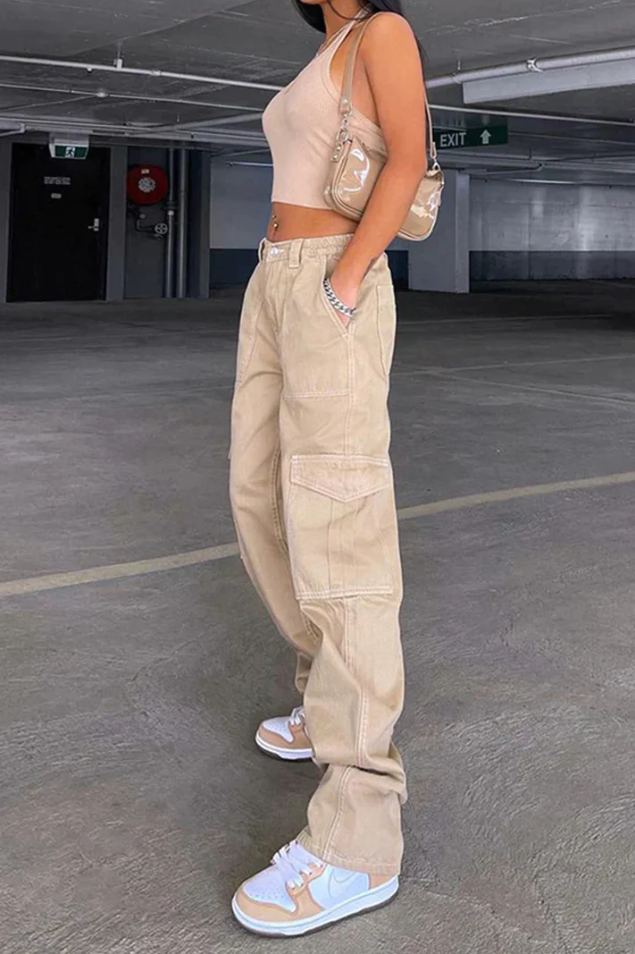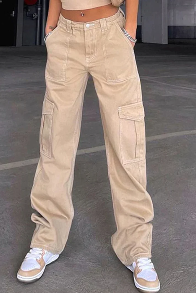 Stijlvolle damescargobroek van Karley. Ontworpen met moderne details en praktische zakken. Gemaakt van duurzaam materiaal voor een comfortabele en trendy look.