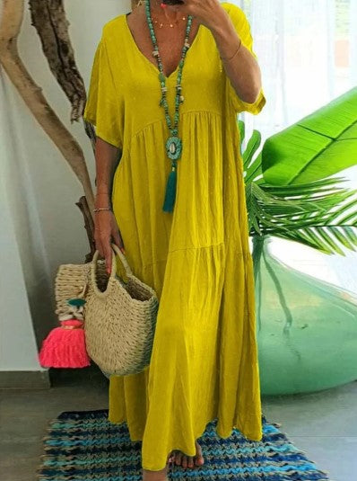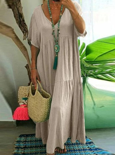 Jurk van katoen en linnen Anne: Deze luchtige jurk combineert zacht katoen en lichtgewicht linnen voor optimaal comfort. Perfect voor een relaxte en stijlvolle look."
