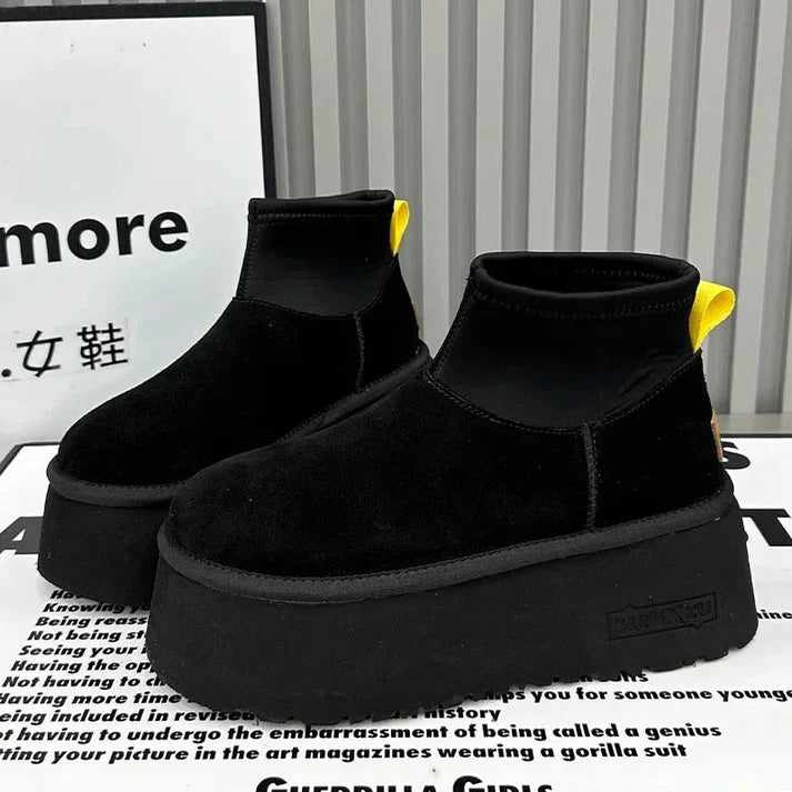 De laarzen van pluche katoen en suède bieden stijl en comfort. Perfect voor modieuze dames die warmte en elegantie zoeken.