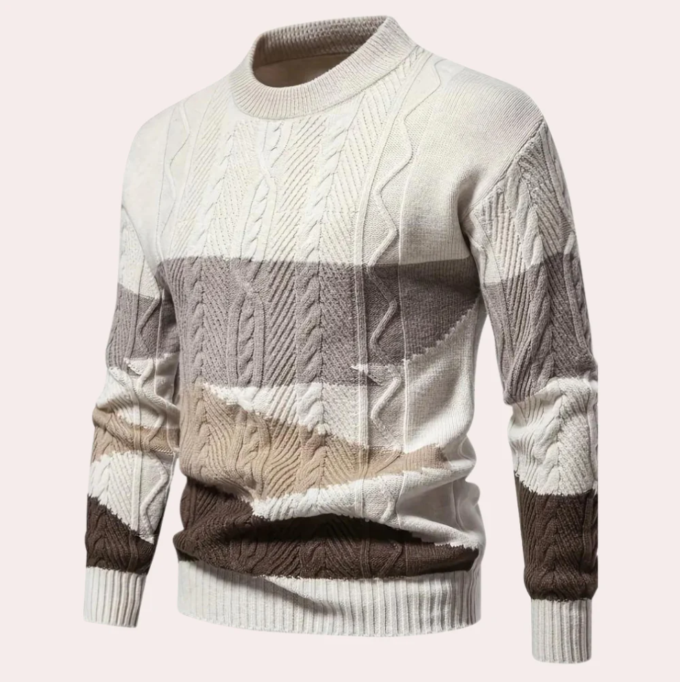 De Ladislau gebreide herentrui heeft een stijlvol contrastpatroon en biedt een comfortabele pasvorm. Ideaal voor een casual en moderne look.