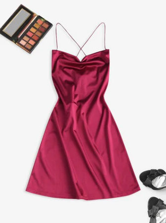 Lily – satijnen cocktailjurk met spaghetti-zijsplit