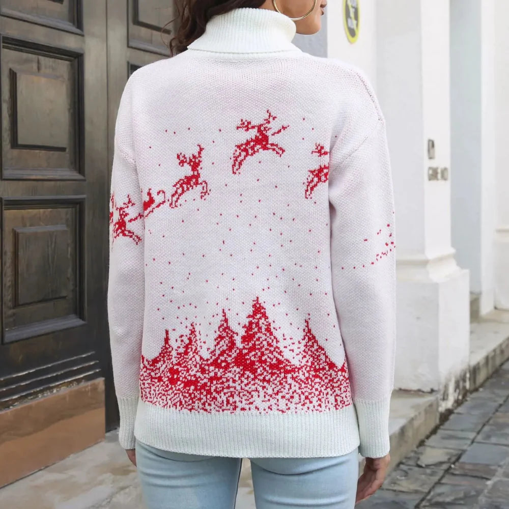LISANA - modieuze kersttrui met col voor dames combineert stijl en warmte. Met een feestelijk design en comfortabele pasvorm is het de perfecte keuze voor een gezellige en trendy uitstraling tijdens de feestdagen.