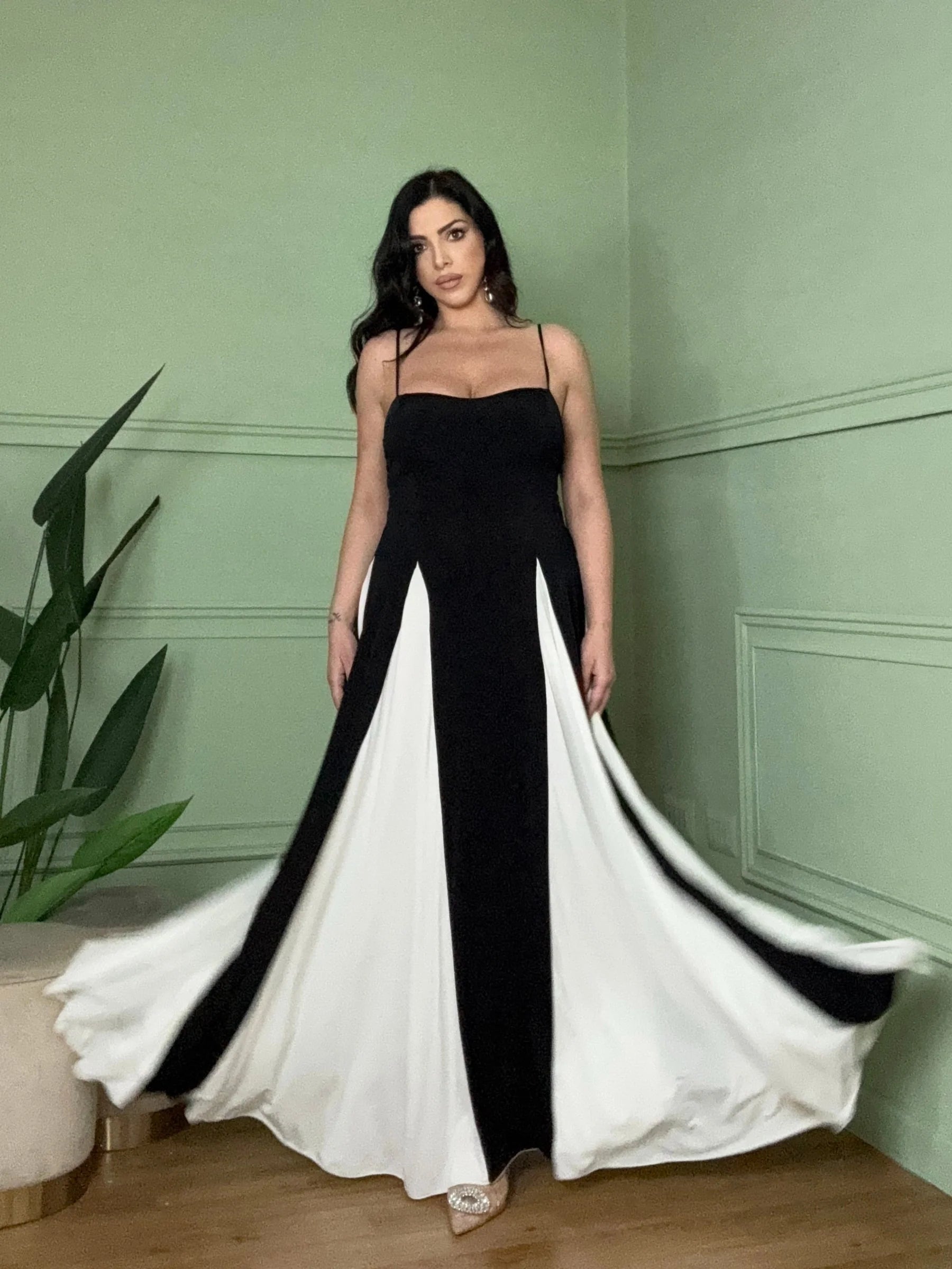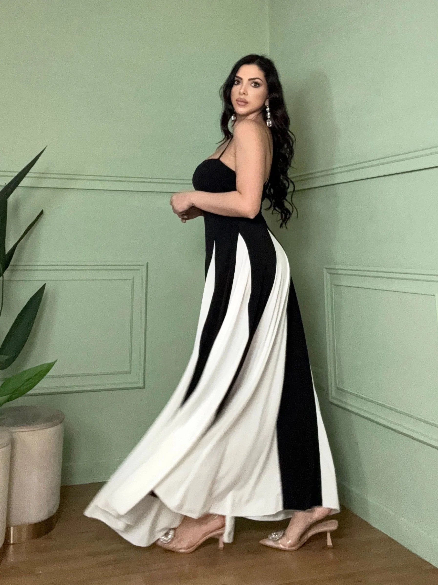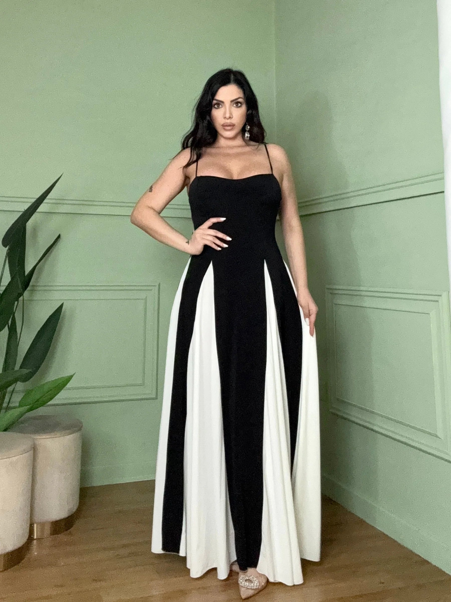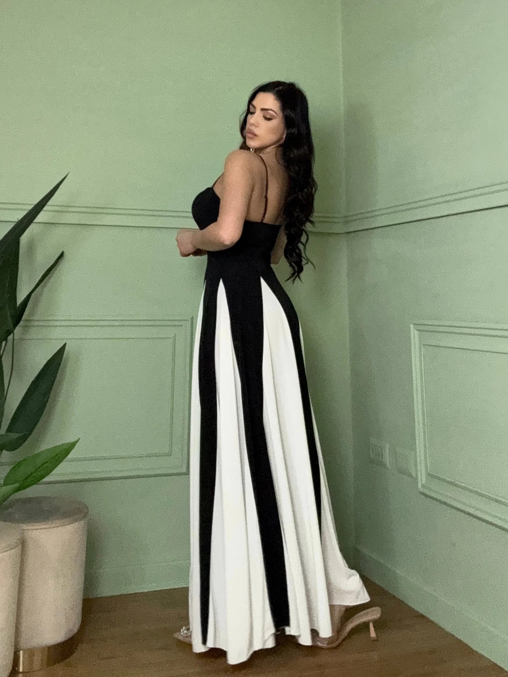 Lucy - Tweekleurige Lange Jurk: Een elegante en veelzijdige jurk met een combinatie van twee kleuren, perfect voor diverse gelegenheden van dag tot avond.