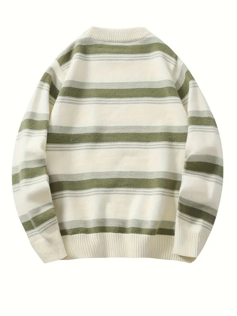 Matthew's stijlvolle gestreepte trui voor heren is een fashion statement voor de frisse dagen. Het subtiele maar toch opvallende strepenpatroon geeft deze trui een eigentijdse en trendy touch. De trui is niet alleen stijlvol, maar ook comfortabel om te dragen dankzij hoogwaardige materialen en zorgvuldige afwerking. Met zijn ronde hals en comfortabele pasvorm is deze trui perfect voor diverse gelegenheden: op kantoor, in de vrije tijd of op gezellige avonden. Met deze trui creëert Matthew een moderne look die comfort en stijl harmonieus combineert.