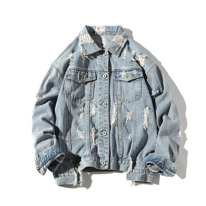 "Mesha – heren spijkerjack met patch op de achterkant: Stijlvol spijkerjack voor heren, versierd met een opvallende patch op de achterkant. Een trendy exemplaar voor een casual look."