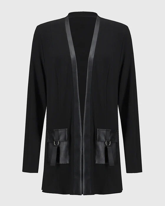 Deze modieuze jas met een effen kleur en stijlvolle patchworktas biedt een unieke en eigentijdse uitstraling. Het verfijnde ontwerp en praktische details maken deze jas ideaal voor een trendy en functionele look.