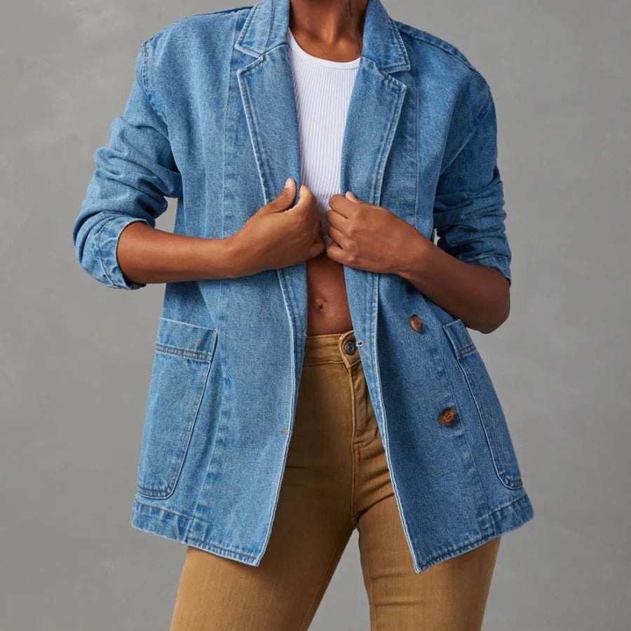 De Nessa casual damesspijkerjack met zakken is een tijdloze en praktische toevoeging in iedere garderobe. Gemaakt van duurzaam denim, heeft een comfortabele pasvorm en handige zakken, perfect voor een moeiteloze casual look.