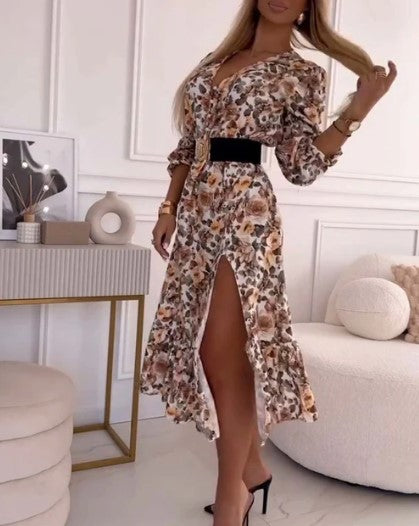 "Nora Autumn Blossom Dress: Een charmante jurk met een herfstachtig bloemendessin dat warmte en elegantie uitstraalt. Ideaal voor de herfst en speciale gelegenheden."