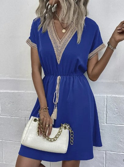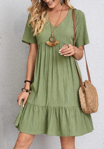Olivia – cocktailjurk, eenvoudige, losse kanten jurk met v-hals