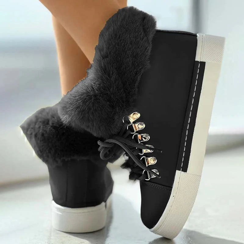 Pluche enkellaarsjes voor dames. Deze stijlvolle enkellaarsjes combineren een luxe pluche voering met een modieus design, ideaal voor warme en comfortabele looks in de koude maanden.