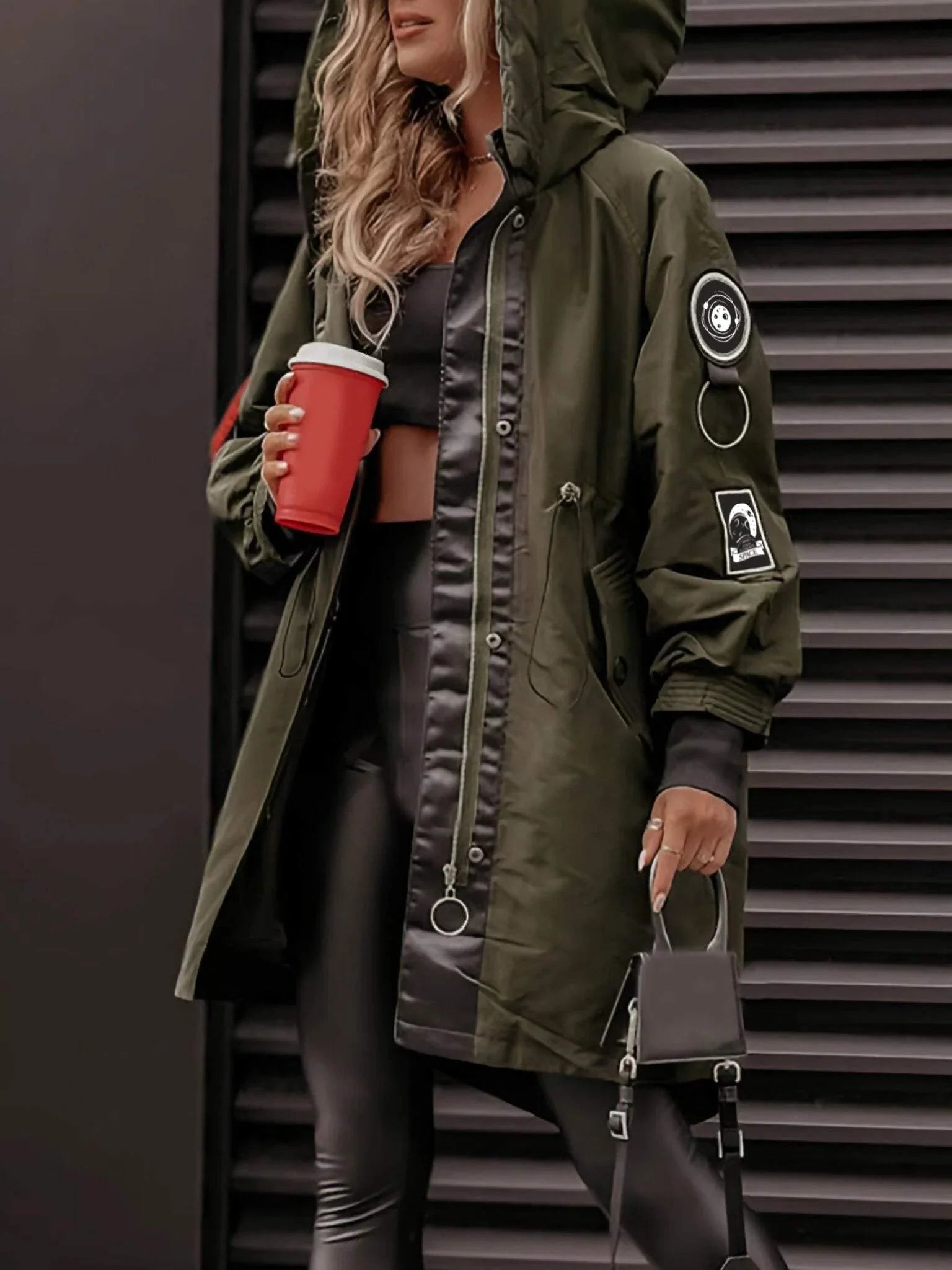 De Raina is een chique jas met capuchon, ontworpen voor een stijlvolle outfit en optimale warmte. Deze mode jack combineert comfort met een ingewikkelde look, perfect voor diverse locaties in de wereld.