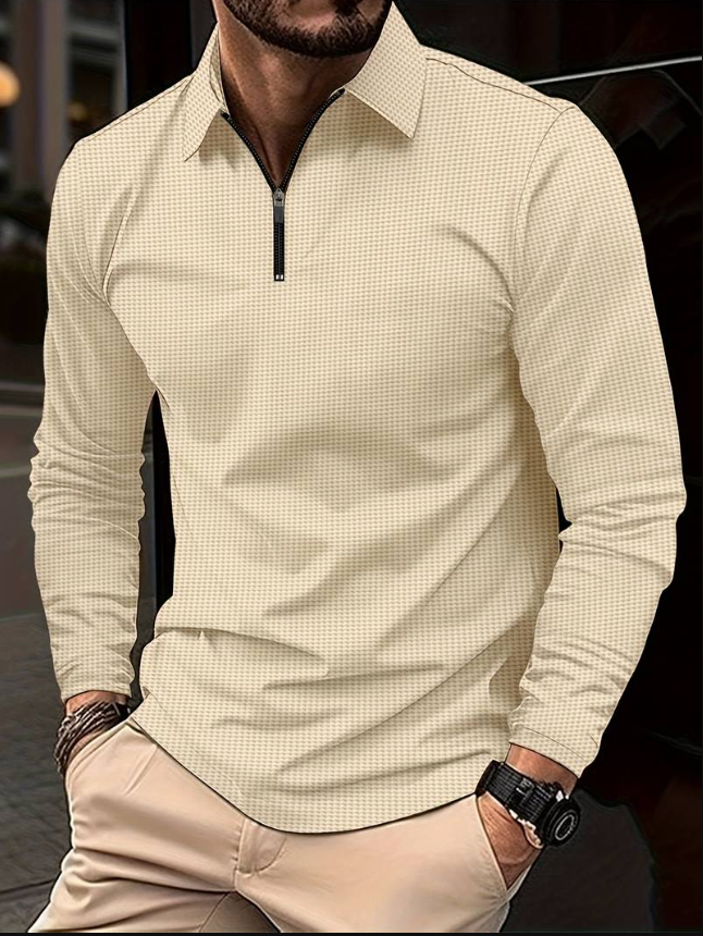 Sam casual wafeloverhemd met lange mouwen en v-hals