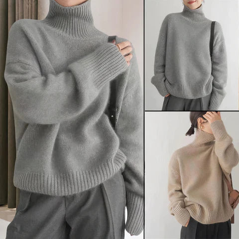 De **Sonja kasjmier coltrui** is een luxueuze en elegante keuze voor koude dagen. Gemaakt van zacht kasjmier biedt deze trui uitzonderlijk comfort en warmte, terwijl het tijdloze design een verfijnde uitstraling geeft, perfect voor zowel casual als formele outfits.