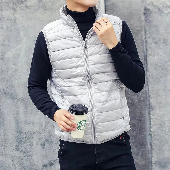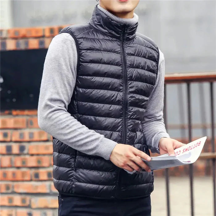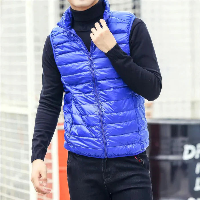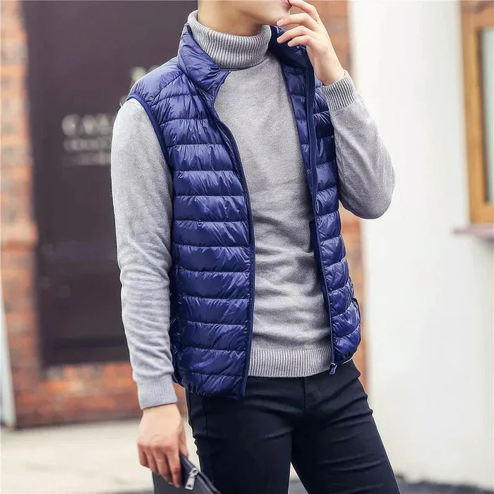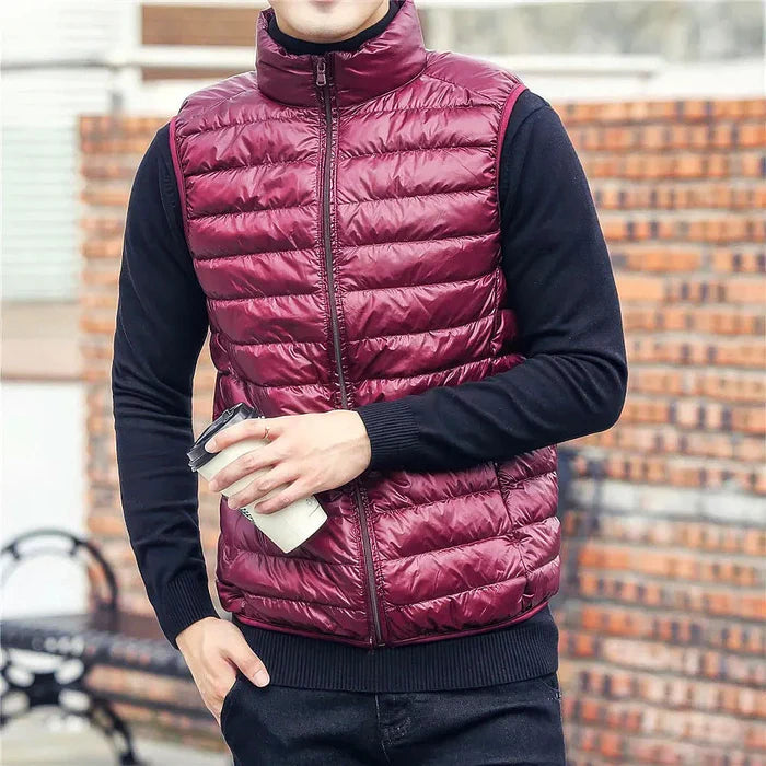 Het Tarik donsvest voor heren biedt warmte, comfort en een moderne uitstraling. Dankzij de lichte vulling, de stevige rits en het stijlvolle ontwerp is het perfect voor koudere dagen.