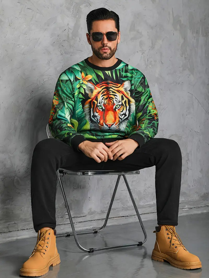 Duik in de wilde kant van mode met Williams herentrui met tijgerprint en ronde hals. Deze unieke trui combineert stijl en persoonlijkheid en zal de eyecatcher van je garderobe zijn. Het opvallende tijgerpatroon geeft de trui een krachtige uitstraling, terwijl de klassieke ronde hals een tijdloze touch toevoegt. De hoogwaardige afwerking zorgt voor een comfortabele pasvorm terwijl je met deze trui je individuele stijl benadrukt. Perfect voor casual gelegenheden en een statement-stuk dat een krachtig tintje aan je garderobe zal toevoegen. Ontdek samen met William een trui die meer is dan alleen kleding - een uitdrukking van je persoonlijkheid.