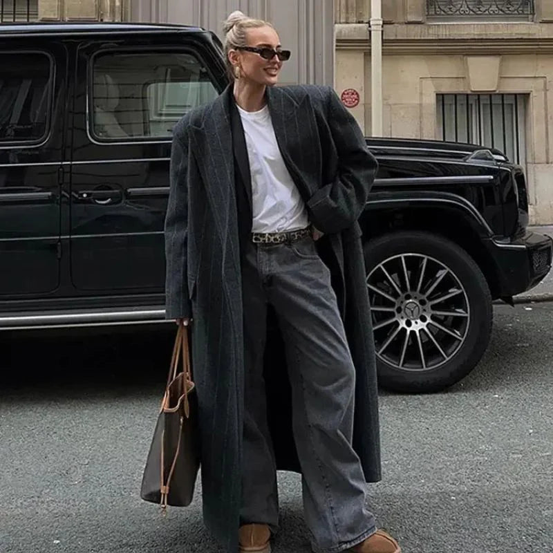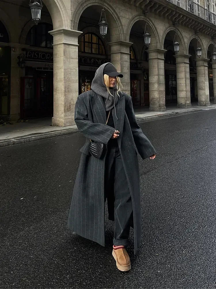 Yolie – lange gestreepte winterjas